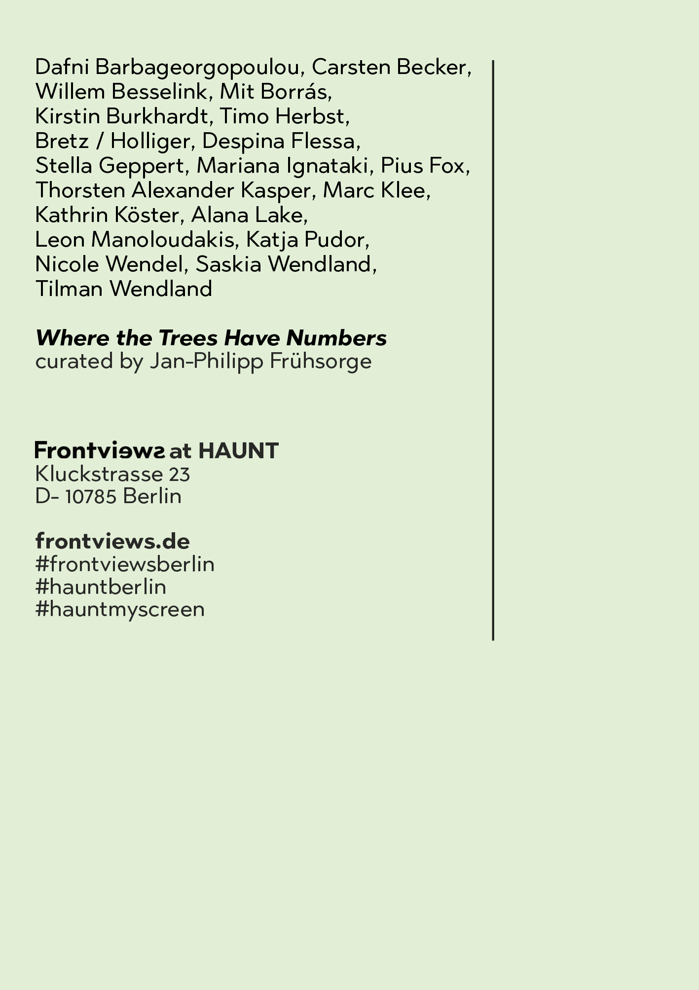 WHERE THE TREES HAVE NUMBERS, Haunt, Berlin 4.09.20 – 26.09.20