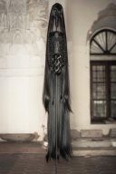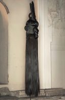 • The Witch, 2018, synthetic hair, fabric, polyester fiberfill and metal, 188x20x32cm
