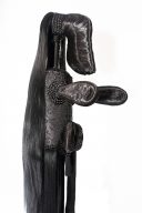 • Le Parisien, 2018, synthetic hair, fabric, thread, polyester fiberfill and metal, 190x20x20cm