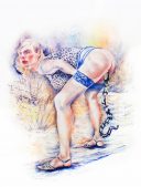 Boy You Turn Me – Never on Sundays, 2021, watercolor, gouache, color pigments, graphite and colored pencils on paper, 109x71cm