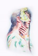 Luke, 2021, watercolor, gouache, color pigments, graphite and colored pencils on paper, 71x52cm
