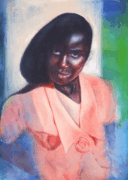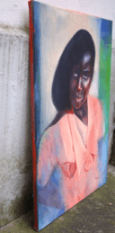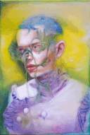 Carlotta, 2024, acrylic, oil and pastels on raw cotton, 50x70cm -
