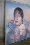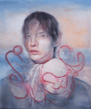 Carlotta, 2024, acrylic, oil and pastels on raw cotton, 50x70cm