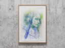 J, 2020, watercolor, pigments, graphite, pastels, colored pencils on paper, 70x49cm -