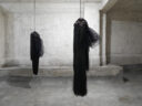 The Lucretias, 2025, velvet fabric, synthetic hair, polystyrene foam, polyester fiber filling, plastic and metal, 205x120x40cm, photo by Stathis Mamalakis -